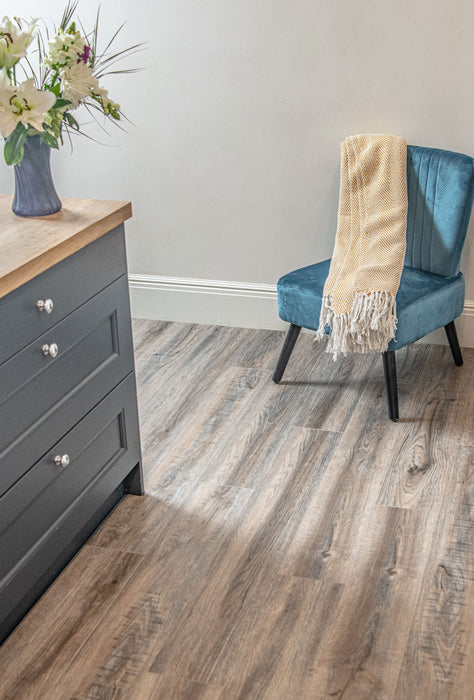 This stylish distressed SPC flooring features a durable limestone core, built-in underlay, and easy drop-lock fitting—ideal for modern homes. Fully waterproof when installed.